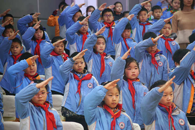 来自进才实验小学的“红色小达人”常欣怡同学宣读了关于向新疆喀什、青海果洛、云南迪庆、贵州遵义等地学校建雷锋角的倡议书,倡议上海的小伙伴们将自己闲置衣物捐给上海对口地区的小伙伴们。