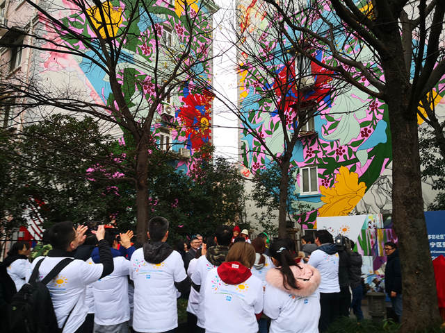 据了解,该项目是长宁区内首个竣工的住宅山墙彩绘项目,同时也是第一个企业自发,通过居民自治方式参与社区微更新的纯公益项目,项目得到了PPG公司的公益赞助。这家长宁区重点企业发起并倡导的“多彩社区”项目,自2015以来,已在39个国家完成超过270个“多彩社区”项目。