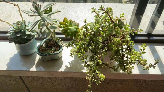 其余的绿植看起来也都有些病恹恹了。通过度娘,我知道了它们的名字,发财竹、多肉……我一边给它们浇水,一边在想,当个居家女主人不容易啊。