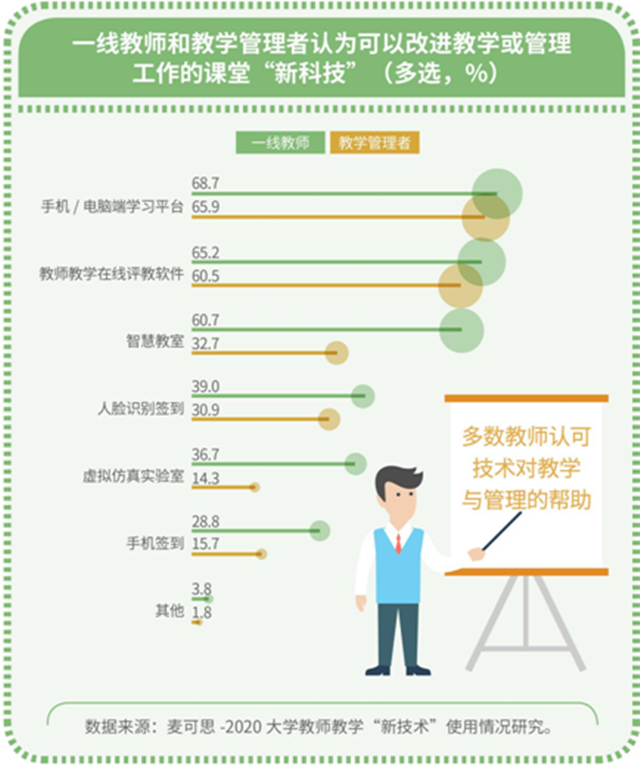上半年,走上“在线讲台”的教师,切身体验了科技如何解决师生“天各一方”带来的教学难题。麦可思最近通过问卷收集了536名高校教师对科技与教育“联姻”的看法。