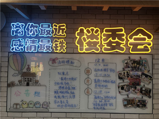 在“不忘初心、牢记使命”主题教育中,普陀区理顺管辖权问题,由长风新村街道作为唯一的“店小二”对楼宇实施“一楼统管”。统一管理后,长风新村街道党工委决定将社区居委会模式向楼宇延伸,建立近铁城市广场“楼宇治理委员会”(简称“楼委会”)。
