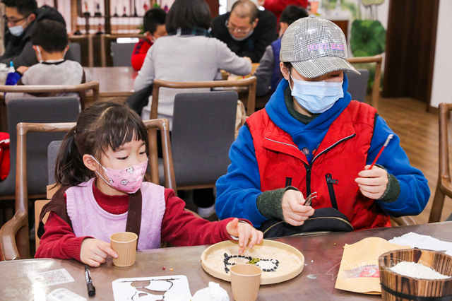 不少小朋友在父母带领下前来“打卡”,品尝一碗醇香的腊八粥,体验“五谷贴画”“八谷淘宝”“儸舞击鼓”“ 稳拿胜蒜”等腊八传统民俗小游戏,增强了动手能力,也进一步了解了传统习俗。“我知道腊八节要喝粥,这个腊八粥很好喝!”6岁的谷谷说得响亮,引来现场的笑声。