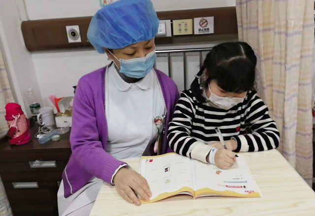 在这样的情况下,坚守的儿科人一方面调整自己忙乱的思绪,一方面从衣食住行入手满足患儿的需求,抚平他们的焦躁与不安。不同年龄、不同病症,患儿饮食各不相同:风湿免疫类疾病患者需低蛋白、低盐、低脂饮食,临床营养科的配餐不仅需考虑健康因素,也尽量给孩子们最佳口感;孩子们活泼好动,医护人员就按病房分批让大家在走廊上透气活动。工勤师傅阿姨们一天去指定物资收寄点无数次,就是为了第一时间将家属们送来的钙片、常用药等送到患儿手上;陪护患儿的妈妈有很多工作需要处理,护士姐妹会主动分担起小朋友的看护工作,让妈妈可以腾出手来处理工作。护士长除了日常输液操作外,还会逐床进行心理疏导。医生除了进行医疗措施调整,还会给孩子辅导功课,帮助他们跟上学校的学习进度……