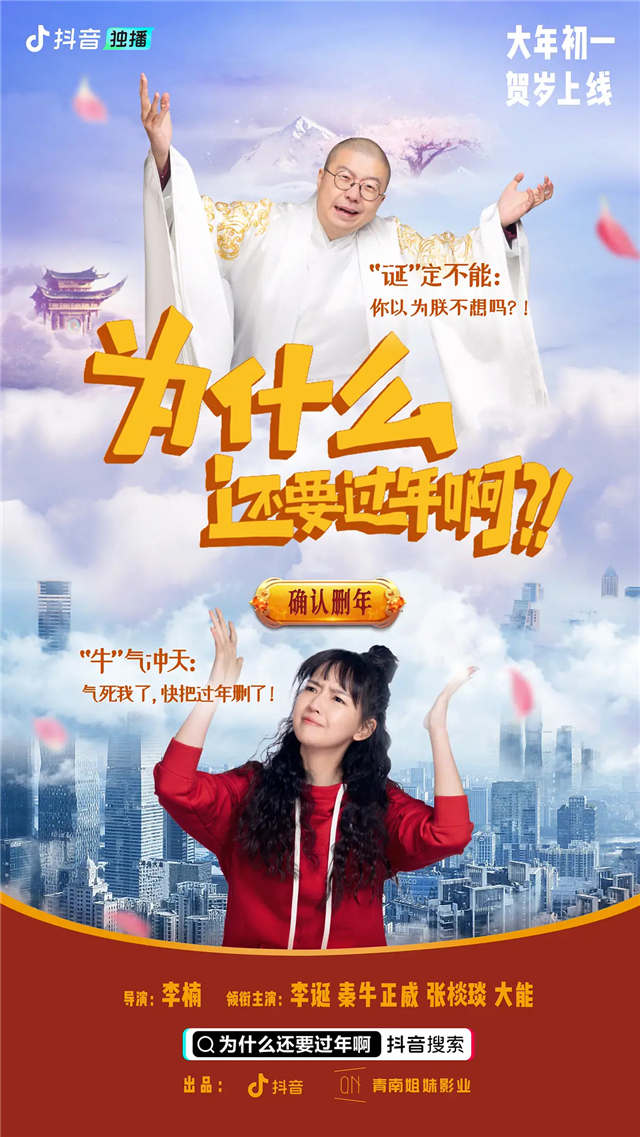 过年被三大姑八大姨催婚催相亲,或者同学聚会要被凡尔赛,你会不会想“删除”掉过年这件事?年轻“凡人”们的吐槽,被90后青年导演李楠拍成了中二、搞笑的系列短剧《为什么还要过年啊》,风格连吐槽大师李诞都极为欣赏,欣然接受邀约,到片中扮演起了每天都要倾听年轻人们吐槽的玉皇大帝。系列短剧在网络上,颇受追捧。