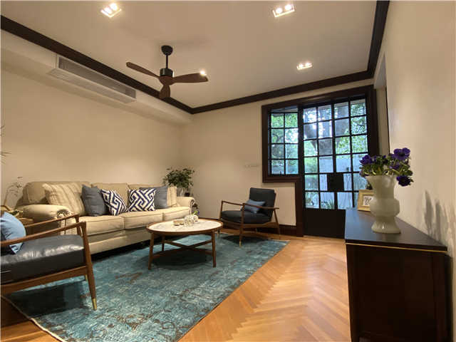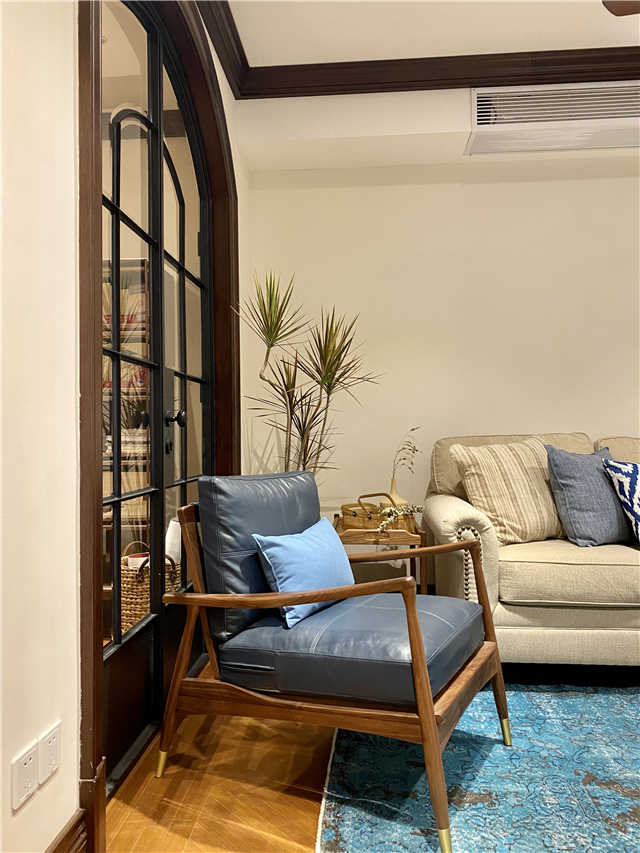 不仅如此,设计师们还追溯了上海以及岳阳路环境里本有的里弄元素。深褐色老上海风情的木作、老洋房的半圆拱券、米色系肌理的墙面、深色小块人字拼木地板、古典的藤编家具铁艺家具……