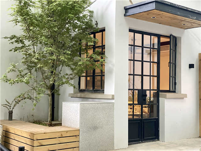 “这里真的是居委会吗?我都不敢进来了。还以为是咖啡馆。”余先生和其他几位居民来到岳阳路上的建岳居委会,在穿过一处幽静的迷你庭院后感慨道。