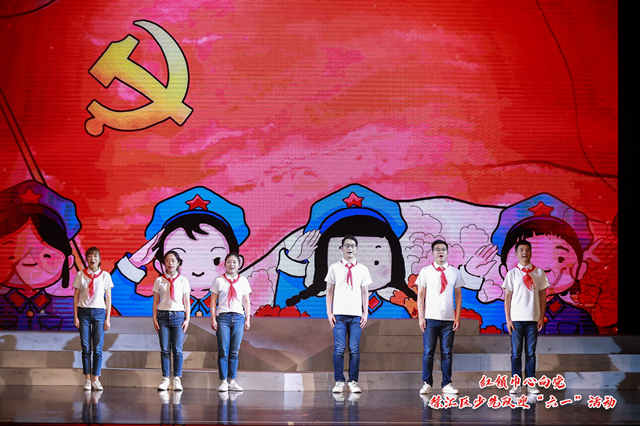 本次主题队课按照“安源儿童团、劳动童子团、共产儿童团、抗日儿童团、解放战争时期地下少先队和儿童团、中国少年先锋队”的少先队发展时间轴,由辅导员和队员们通过演绎情景剧《为了明天》、歌舞剧《光辉的记忆》、情景剧《跨越时空的对话》和配乐诗朗诵《向阳而生的力量》,生动展现了一代又一代少先队员在党的领导和关怀下,在队组织中全面发展、茁壮成长。之后通过微视频《徐汇红领巾,一直在路上!》和全场大合唱《我们都是追梦人》表达了徐汇少先队听党话、跟党走,传承红色基因、争做共产主义事业接班人的决心。