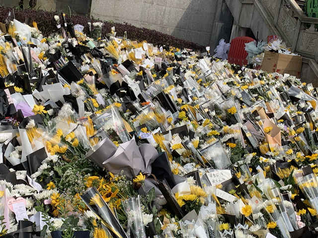 在距离殡仪馆约2公里的路口,已经有许多市民下车步行前往。小马也成了漫漫长队中的一员,身旁警察维持着秩序,有志愿者为大家提供免费饮用水,还有热心市民免费为大家赠送悼念鲜花,看着一望无际的长龙,同行的一位大爷喃喃着:“这就是党和袁老在人民群众心中的威望啊。”这一刻,这名00后感动至深。