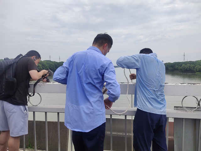 取水采样、现场监测……烈日下,在汾湖大桥上,青浦、吴江和嘉善的水质监测人员的衣服已经湿透,但他们仍有条不紊地对水质进行抽样监测。