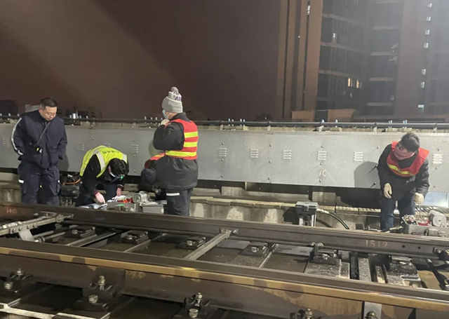 维保通号各班组加强各类隐患排查工作,对转辙机设备外部钢轨绝缘进行测量,并进行防冻防寒处理,及时调整参数,确保所辖设施设备工况良好。