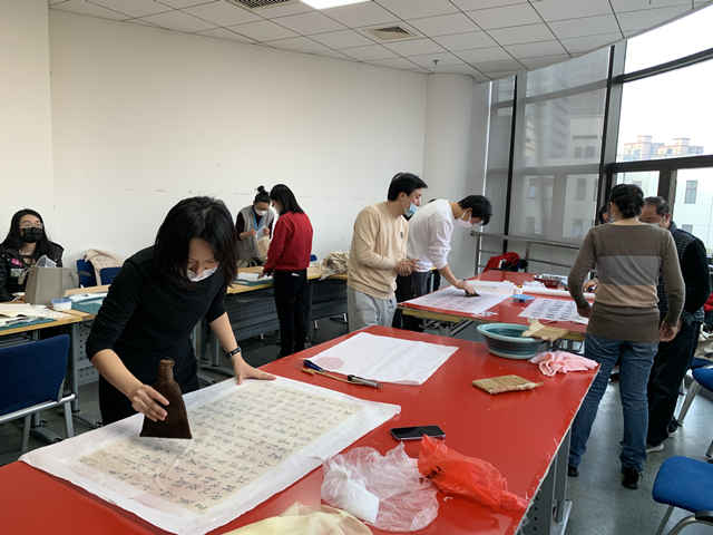 应该说,周末美育课堂最初是为“双减”后的孩子创设的,但其实之前的上课时很多家长都有陪同,所以今年的周末美育课堂尤其注重打“亲子牌”,在课程内容设置上作了精心的安排。项目负责人陶欣告诉记者,他们的亲子课程分两种:一种是同一门课分为成人班和儿童班,比如同是沪语课,针对成年人和儿童的不同需求和心理,开出了《沪语成人启蒙教学100句》和《囡囡沪语儿歌古诗诵读》;另一种是家长和孩子可以一起上一门课,如总校的《中式点心亲子班》《传统书画装裱与修复入门》,分校的《木艺亲子班——中国的“乐高”》等,家长和孩子可以成为同班同学了。在价格方面秉持公益价格,春季12次课亲子班一大一小1200元,其他课程为800元,远低于市场价。