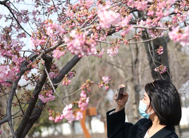 随着春天的到来,樱花开始“争奇斗艳”。青年报记者 吴恺 摄