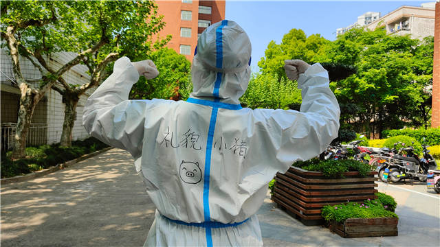 一根小小的棉签棒伸入咽腔,转几下取出,放入样本容器,看似简单的一个动作,每天重复成百上千遍,手臂难免酸痛。虽然每天穿上厚厚的防护服,走路都比平时要耗体力;虽然每次核酸采样结束,汗水已经打湿了防护服下的衣衫;虽然双手起皱发白,但韩雪茹和其他队员们毫无怨言。“在学校,我们是被老师守护的学生;在防疫前线,我们就是守护者,只有行动起来才会越来越好。”韩雪茹说道。