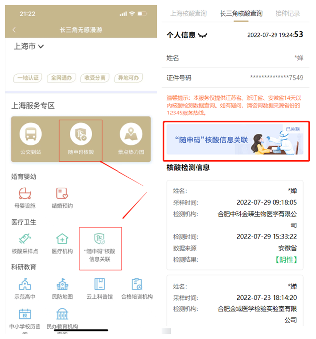 长三角核酸数据实现互通,随申办可查询苏、浙、皖核酸结果