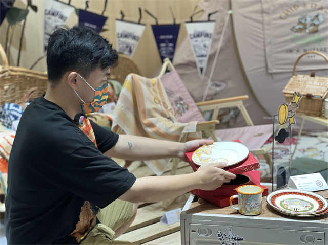 解决了材质和工艺的问题,谢贤将工作重心转向了设计,究竟何种器型,怎样的图案才是现代生活中年轻人喜爱的呢?“一开始,我们设计的都是一些时尚简约风格的图案,它们与那些经典的搪瓷杯、搪瓷盘碰撞出让人耳目一新的感觉,很快就获得了大家的喜爱。后来,我逐渐接触到了一些非遗大师,经常去大师们的工作室里参观、学习。欣赏着这些让人叹为观止的艺术瑰宝,我就想着将这些经典的图案经过重新设计后运用到搪瓷制品上来。