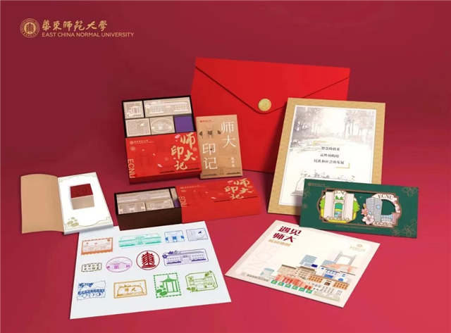 红与金交相辉映,是传统与创新的结合,是青春与梦想齐飞的澎湃。折叠页形式,展开就是学校的整个平面图线条勾勒,就像一份邀请函,表达上应大对即将来到的新生们满怀期待与欢迎。