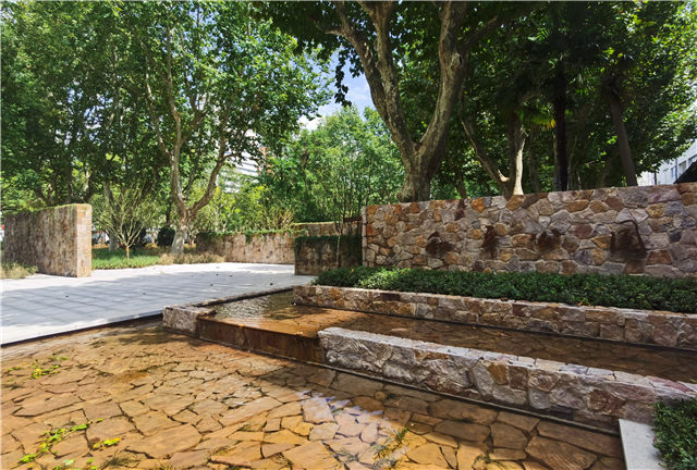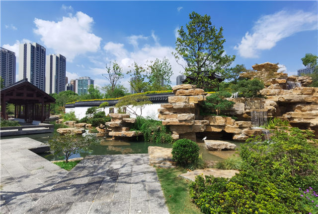 结合原先笼舍的高差,堆叠了自然式叠石瀑布,山石叠泉之上建造中式六角亭,并且利用池边新建中式回廊,增加互动性和趣味性。虽然这里的原住民早已搬走,但也不影响新居民的加入:优美的环境,良好的生态,吸引了一对白鹭夫妇前来报到,构成了一幅最生动画卷。这个枫停晚香与茗厢扶柳、和鸢宛风、花坊悦音、新港虹影、畅心涟湾、曲水玩月、竹桥花溪一起,构成了“和平新八景”。