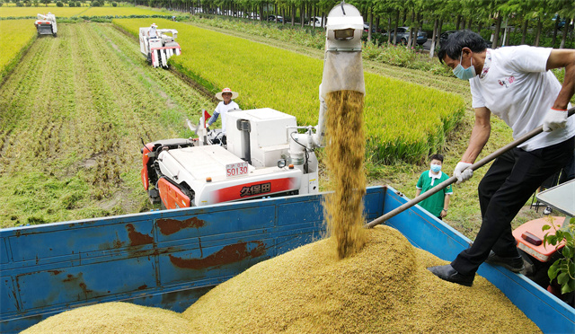 位于吕巷荡田村的顾海红家庭农场内,收割机正在农田里奔忙,正在收割的为早香大米,俗称为“国庆稻”,口感香甜软糯,适合熬粥,深受市民喜爱。值得一提的是,这波稻田自5月开始育苗插秧等工作,当时虽然仍处于疫情防控期间,但在吕巷镇农业农村部门的积极协调下,保障了农资农机等农业设施,确保了不误农时。