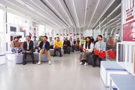 在中共二大会址纪念馆里,20多名纪念馆的青年党员和静安两新组织的青年共同收看直播,感慨万千。