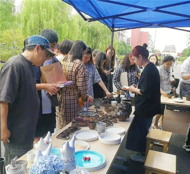 今年的游园会期间,中山公园在兆丰印记旁边开设牡丹集市,邀请上海工艺美院、区文化艺术中心及长宁区特殊职业技术学校开设摊位,展示牡丹扇子、饰品、陶瓷、月份牌、叶雕等。