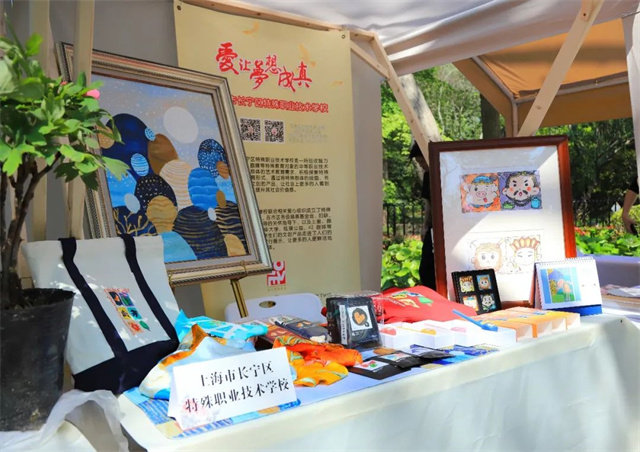 兆丰印记外面,是此次游园会特地打造的集市。上海工艺美院、长宁区文化艺术中心及长宁区特殊职业技术学校纷纷带着作品前来展示,邀请市民游客亲身体验、参与互动。市民在游园的同时也能参与到文化创意产品的体验中来,增加了活动的趣味性和互动性。