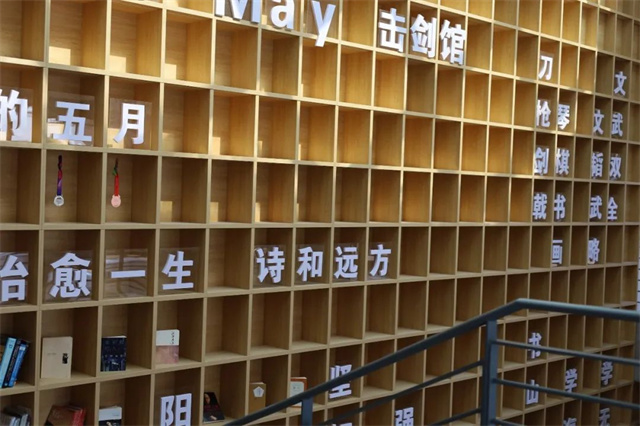 据工作人员介绍,“击剑馆”最为独特的莫过于环境。这里的功能非常“多元”——不仅是一座击剑馆,也是一座咖啡馆,同时还兼具图书室的功能,通天落地的巨大书墙是馆内最“弹眼落睛”的风景。