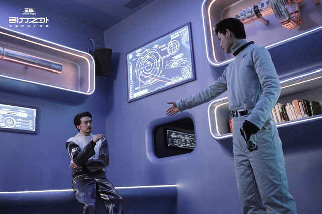 该作品以《三体III:死神永生》为蓝本,围绕人类恒星级战舰“万有引力”号的故事展开,通过3400平场馆实景搭建,并集沉浸式演艺,AR、VR、AI和数字交互艺术于一体。