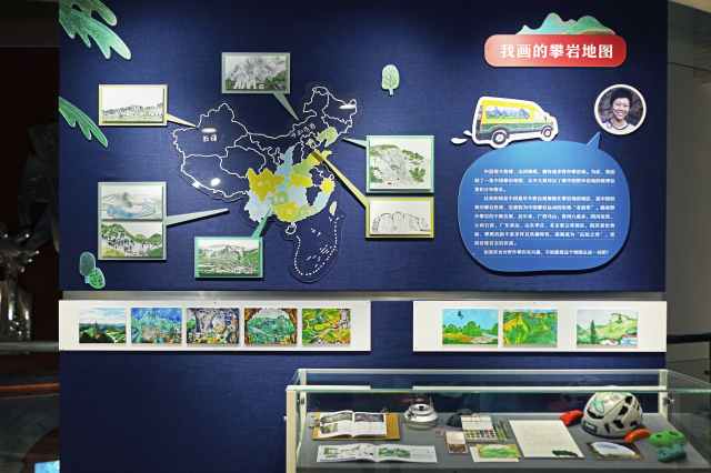 此次展览中,木爷为岩友们绘制的中国攀岩地图也惊喜亮相,从内蒙古呼和浩特、云南丽江到山东枣庄、贵州六盘水, 这些风景优美的攀岩圣地都化为了她笔下一个个A4大小的多彩方块。加上专业“路书”,也就是不同攀岩条线的“说明书”,以及趣味攀岩知识问答,点燃了不少观众尝试攀岩运动的热情。