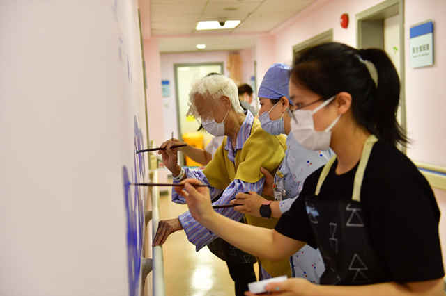 除了来自医护人员的温暖与爱,每到周末或传统节日,医院医务社工和学生志愿者也曾多次来到病区,和病患一起制作手工、庆祝生日……每到此时,笑声、掌声,打破病房原有的宁静,病痛在此刻似乎不复存在。
