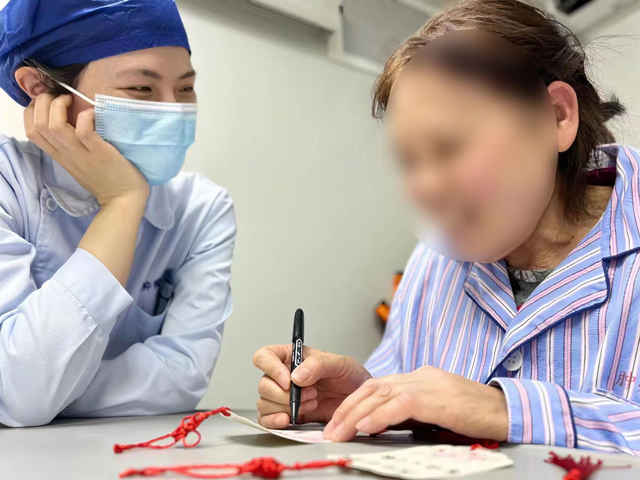 “与患者平时的交流与沟通是我们的日常,聆听他们的诉求和唠叨,就像家人一样陪伴。”黄喆说,安宁疗护的目标就是让患者有祥和的心理和舒缓的身心,真正用心去陪伴他们。而沟通的话题不仅仅局限在医疗问题上,可以是五花八门的日常生活,甚至是一件衣服、一首歌曲都是值得谈论的对象。她觉得病房就如同一个温馨的大家庭,有医生、护士、医务社工、病友一起,让家属传递自己对患者的爱与呵护,也想办法帮助患者完成他们最后的心愿,让患者和家属了而无憾。