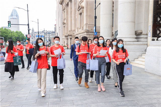 5月18日上午, 中国外汇交易中心的二楼来了一群身穿红色文化衫的金融机构青年,他们正在这里参加“绽放红色青春 照亮金色‘融’光”上海金融系统共青团纪念五四运动104周年暨庆祝建团101周年主题活动,来自上海金融系统的100余名青年参加了本次活动。青年们沿着外滩“上”了一堂“行走的团课”,用青春的脚步寻访外滩金融建筑,回溯中国百年金融奋斗史,赓续红色血脉,凝聚奋进力量。