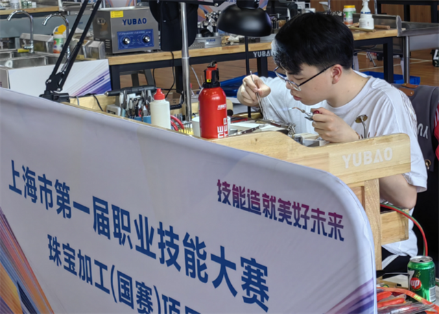 由上海竣豪职业技能培训中心选送的选手杨逸飞,经过激烈角逐,摘得珠宝加工(国赛)项目的桂冠。