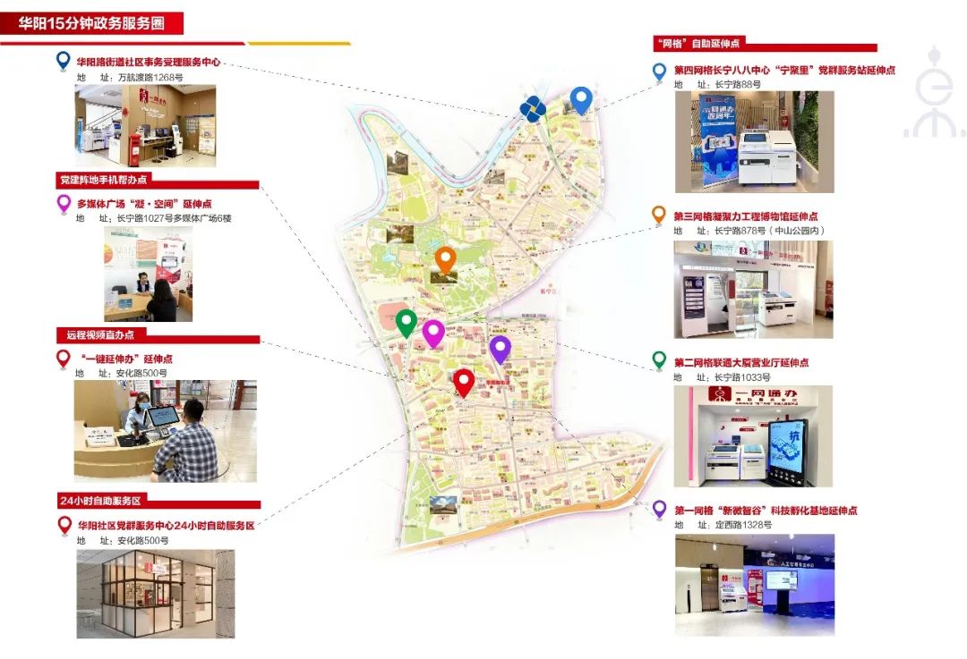 据介绍,为有效解决企业群众“上班时间没空办、下班时间没处办”问题,华阳路街道在地处辖区中心的党群服务中心设立了“一网通办”24小时自助服务专区。这里可以办理换领医保记录册、医保个人信息查询、城保缴费记录打印、公积金查询打印等近100项业务。针对年轻群体,党群服务中心可为其增设“全程网办规划咨询”区,为居民量身定制“全程网办”规划方案,并配备了“图文说明”,方便居民回家自行手机操作;针对老年人群体,有工作人员可协助老年人应用网办新政策,更可为周边80岁以上老人或行动不便的居民提供上门服务的预约。