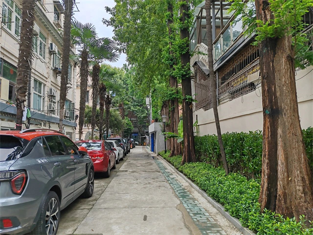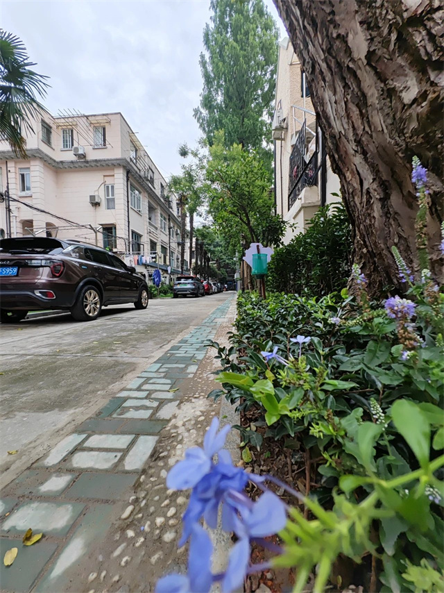 记者在愚园路1315弄看到,小区只有一条主干道,道路两旁一侧是3幢居民楼,每幢楼下都有一个小花园,道路另一侧是一条绿化带,直通到小区弄堂底。夏日的弄堂里,花草遍地,房前屋后也“见缝插绿”,绿色生态环境让人眼前一亮,仿佛置身于花园。
