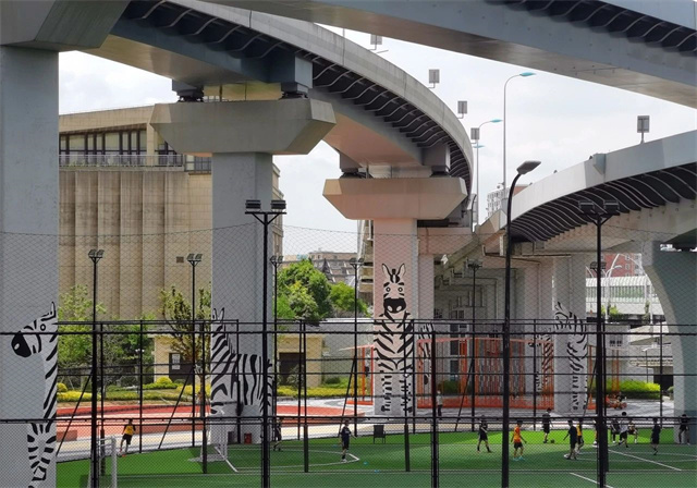 据了解,中环桥下空间涉及苏州河、新泾港、哈密路所围的约3.5公顷范围,该空间按北翟路和中环线分为四个象限,并以“猎豹”“斑马”“火烈鸟”三种动物形象展现着桥下空间的不同主题。其中运用缤纷清新的配色,通过土地复合利用,综合设置运动场地、公共绿地、苏州河休闲驿站、市政配套设施等,提高了土地资源配置效率,为周边居民提供了适合的公共服务设施和有趣的休憩空间。同时,还结合长宁苏州河健身步道贯通工程,提升慢行系统通达性,优化景观和生态,将该区域打造成苏州河特色滨水空间节点。