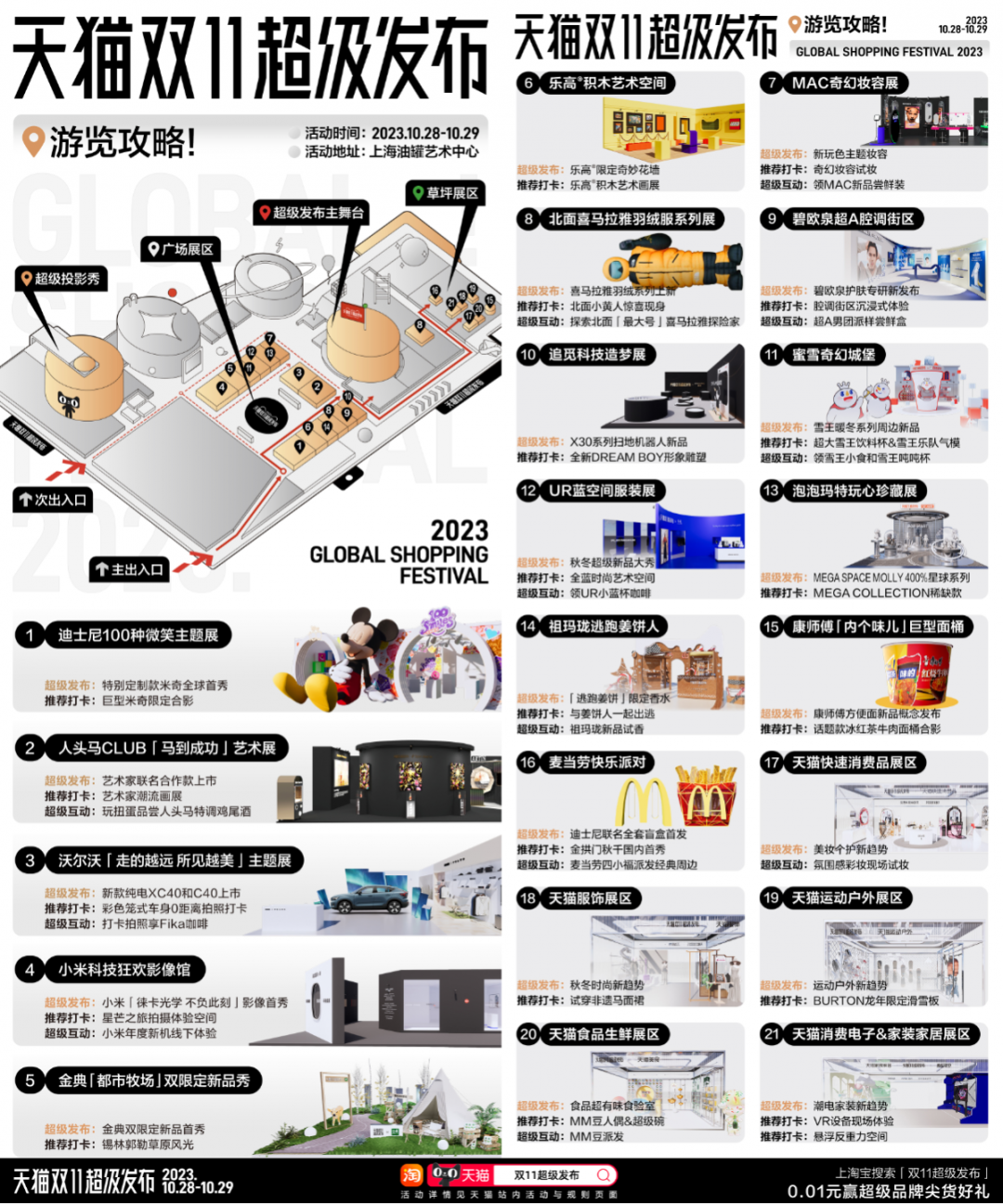 “天猫双11超级发布”于10月28日—10月29日落地徐汇区油罐艺术中心,48小时全周期免费对公众开放。在这里,天猫携手50大超级品牌,共同打造一个好看、好拍、好玩、一站式免费打卡的线下综合体验空间。