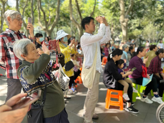 日前,一场由上海市教委、徐汇区文旅局、徐汇区林长制办公室、上海音乐学院等单位主办的梧桐音乐会在襄阳公园举行,出神入化的琵琶弹奏,开口即惊艳的男高音独唱,爵士长号和电钢琴组合的轻松浪漫……一个小时的户外演出为市民游客带来了美的享受,也为这片氛围浓郁的音乐街区再添艺术浓度。