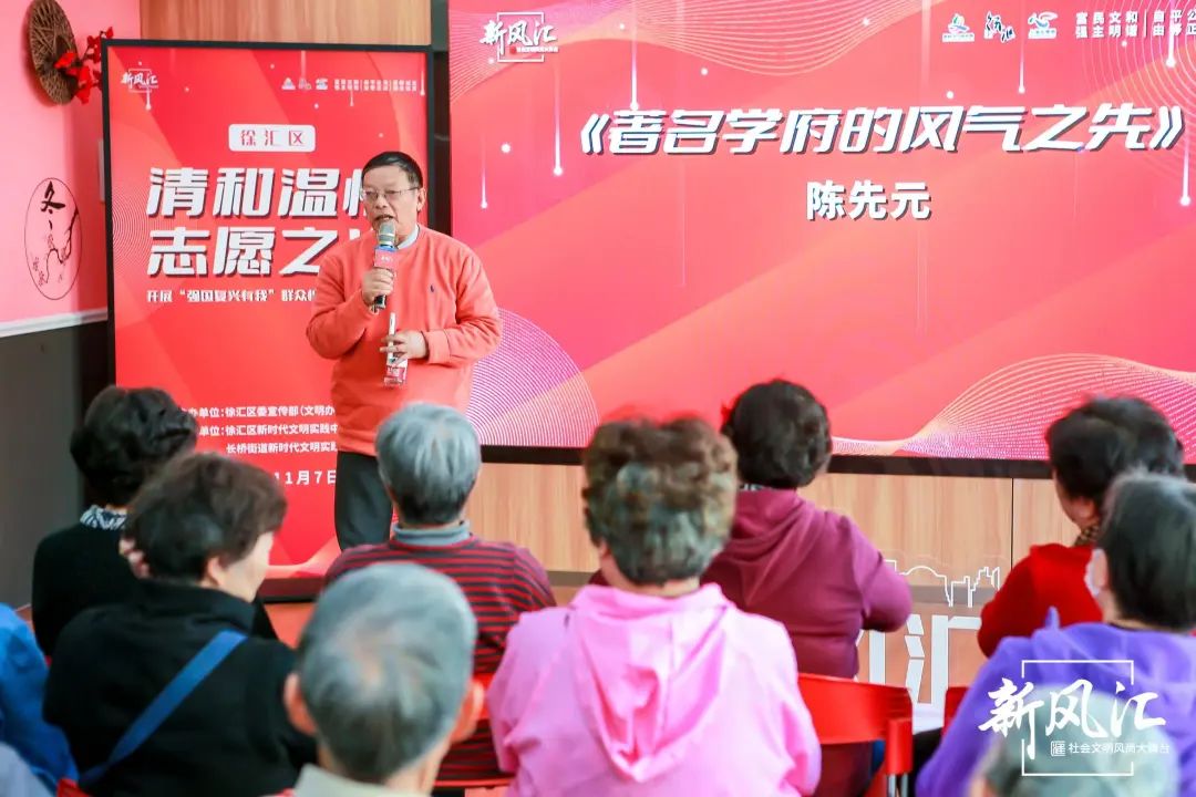在“跟着教授看历史”环节中,来自上海交通大学离退休干部志愿者校史服务团陈先元教授,带来主题宣讲《著名学府的风气之先》。据了解,上海交通大学是19世纪末诞生在徐汇的百年名校,大力推广科学技术,从而带动中国实业发展。交通大学不仅引领中国科技,还是先进思想文化之源。通过几代师生的奋斗与求索,在现代中国引领了科技、文化、社会变革等各方面的“风气之先”。
