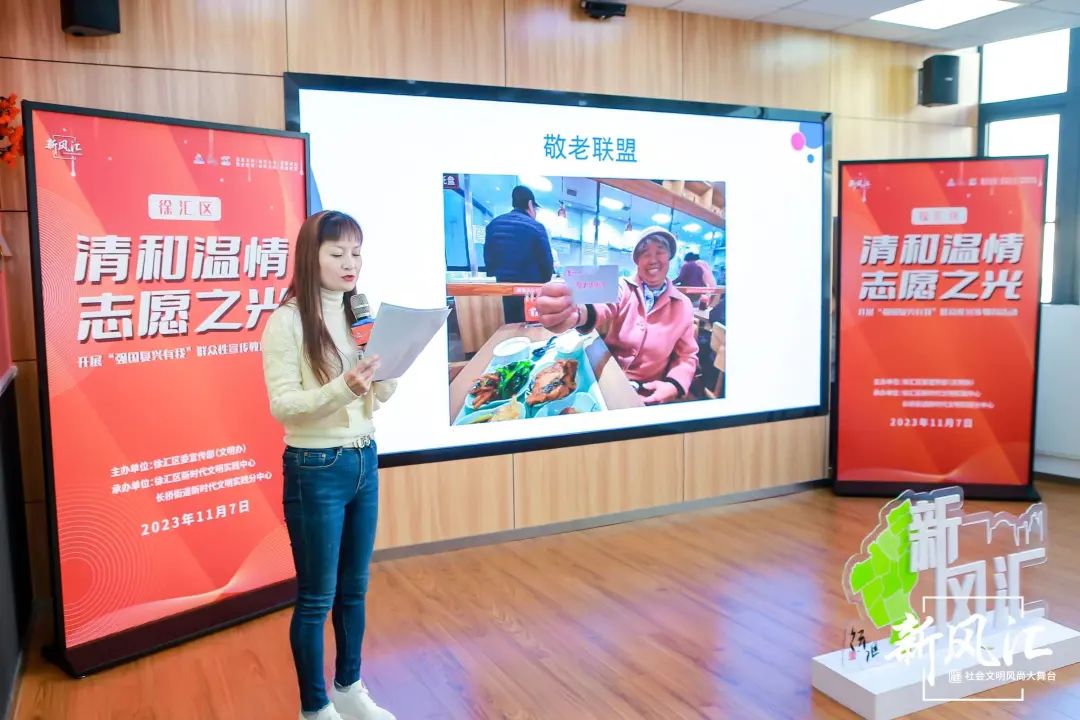 活动由徐汇文艺院校的青年文化志愿者朗诵的诗歌《榜样力量汇新风》拉开帷幕。该诗歌是根据新评选出的徐汇区2022年度道德模范事迹原创改编。