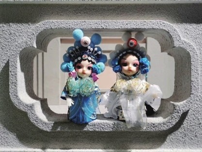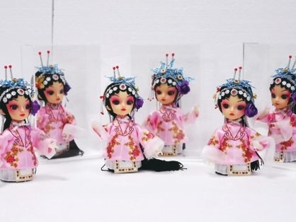 当天上课前,王伟已提前得知将要制作的《西厢记》里的“崔莺莺”娃衣需要用到针线活,对这一挑战充满期待,一共12堂课共计6个京剧造型的人物Q版娃娃,难度和挑战正在递增。花木兰、白娘子、小青,她向记者展示了三个在先前课程完成的娃娃,俏皮可爱的娃娃身着京剧戏服显得威风凛凛。王伟介绍,这三个娃娃均着重以热熔胶来拼贴头饰和服饰,工艺虽简,但服饰和头饰构造极其繁复,其间不乏门道,“比如小青的头面上有两朵蓝花和两朵红花,本来我想着左右两边脸各一蓝一红,但老师告诉我们,传统戏曲服装里,两朵蓝花和两朵红花是各自一组,不能拆开。”通过Q版娃娃制作,王伟学到了不少京剧知识。