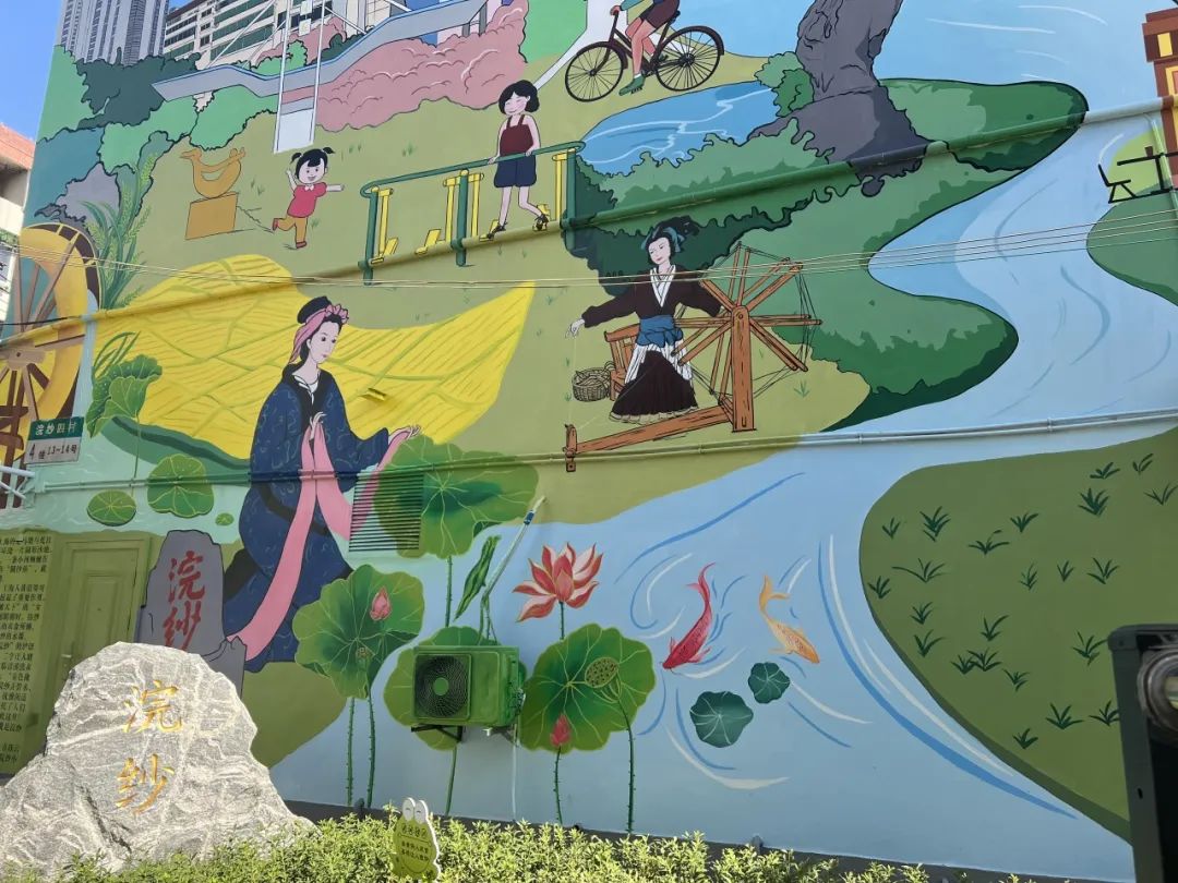 在项目实际落地过程中,居民区党总支还动员社区各方参与募捐,沿街店铺店主、共建单位、部分居民都自发加入。“大家还亲身参与了墙绘作画,和文化墙合影,参与度很高。”浣纱四村居民区党总支书记陈跃说道。