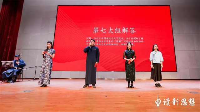 在最令人期待的“交流分享展风采”环节,“汇阅读”小分队就“为什么说中华优秀传统文化不能丢,丢了就割断了精神命脉?”这一命题深入阐述,依托“历史文化风貌区里的音乐圣地”这一生动案例,介绍了百代小楼的厚重历史,描绘了交响乐团的优雅独特,用现场演奏的音符与述说故事的音符串联起传承、融合、创新、发展的精神,传递幸福与美好、感动与豪情,赢得现场观众的阵阵掌声,高票获得“金色勋章”。