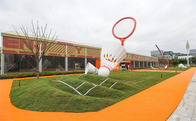 龙腾大道与喜泰支路交界处的 “大球拍”下,则是近日开放的乐动力西岸栖羽体育中心,由12片标准双打羽球场、2片标准篮球场组成,馆内所有体育器材均可移动,实现运动场与大型赛事活动切换的场景。