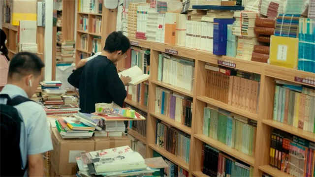 顾客陆陆续续地来了,有的是老朋友,有的是路过被吸引进来的,张强热情地招呼着他们。这时,张强的爱人也开始了外出收集旧书和送书的工作。这座开了20多年的复旦旧书店,是张强夫妇俩的事业,他们如同热爱生命般深爱着它,坚守并快乐着。