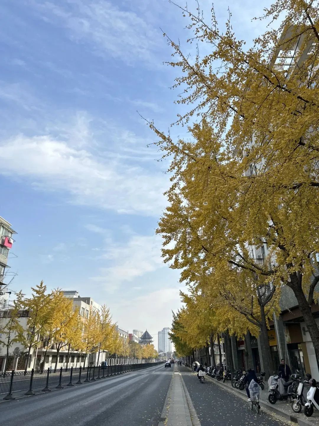 日落时分的银杏大道,银杏秋黄、层林尽染,更是美不胜收。