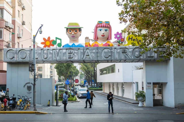 如今园区内新添6大“艺术现场”,延安西路入口的《Hey 见面会》、哥伦比亚大道的《欢乐迷藏》、玉兰广场的《旧时光剧场》、孙科别墅通道的《上生映像馆》等,“艺术现场”内的装置趣味生动,既有与人打招呼的卡通人物,也有邮局、邮票等“时光”元素,老建筑被衬托得越来越有活力。