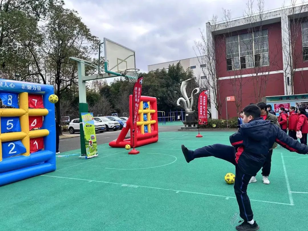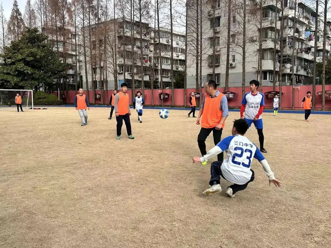 近日,上海市三门中学以一场趣味十足的亲子足球嘉年华为本学期的课业画上句号。冬日和煦的阳光下,近300名同学在操场上快乐“打卡”,不时传来兴奋的欢呼声。