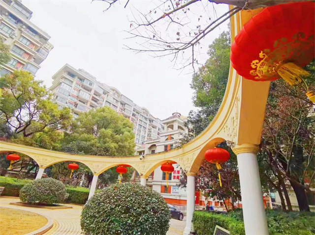 “小区里好喜庆啊,感觉新年就在眼前了。”红红火火的新春装扮,让居民感受到了浓浓的年味儿。