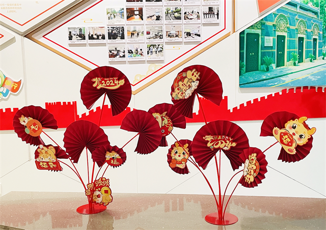 龙年布偶、彩色气球、迎春梅花、新春挂饰……上服集团旗下的创意园也是年味十足,大家纷纷用各具特色的美陈布景把园区装扮得热闹喜气,让这些由老厂房改造的创意园洋溢出了浓厚的节日氛围,焕发出勃勃生机。