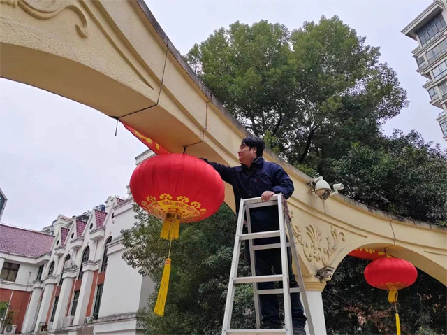 龙年新春的脚步渐行渐近,长宁处处洋溢着浓浓的年味儿。寒风习习的清晨,仙霞慧生活物业虹桥新城管理处的物业人们却忙得热火朝天。在他们的精心装扮下,一对对充满美好寓意的春联被贴上了楼栋大门,一个个大红灯笼随风起舞,一个个“福”字中国结“爬”上了树梢。